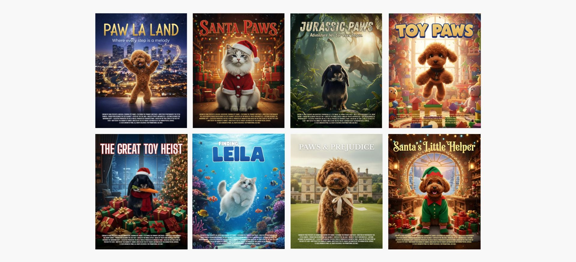 Pick your favorite movie theme from our growing collection — from Santa Paws and Santa's Little Helper to Toy Paws and more.