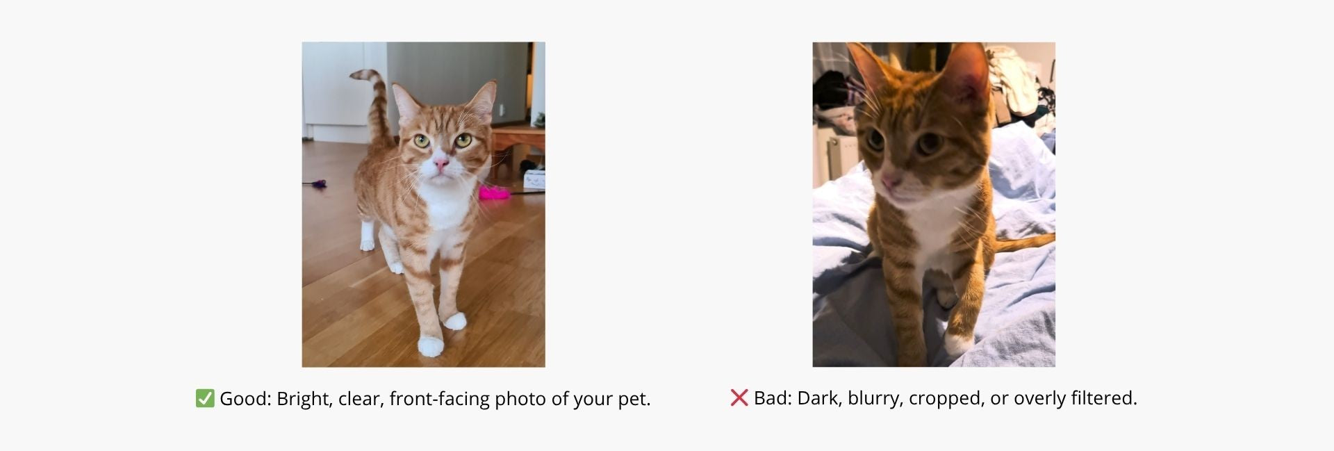Upload 2–3 clear photos of your pet during checkout.